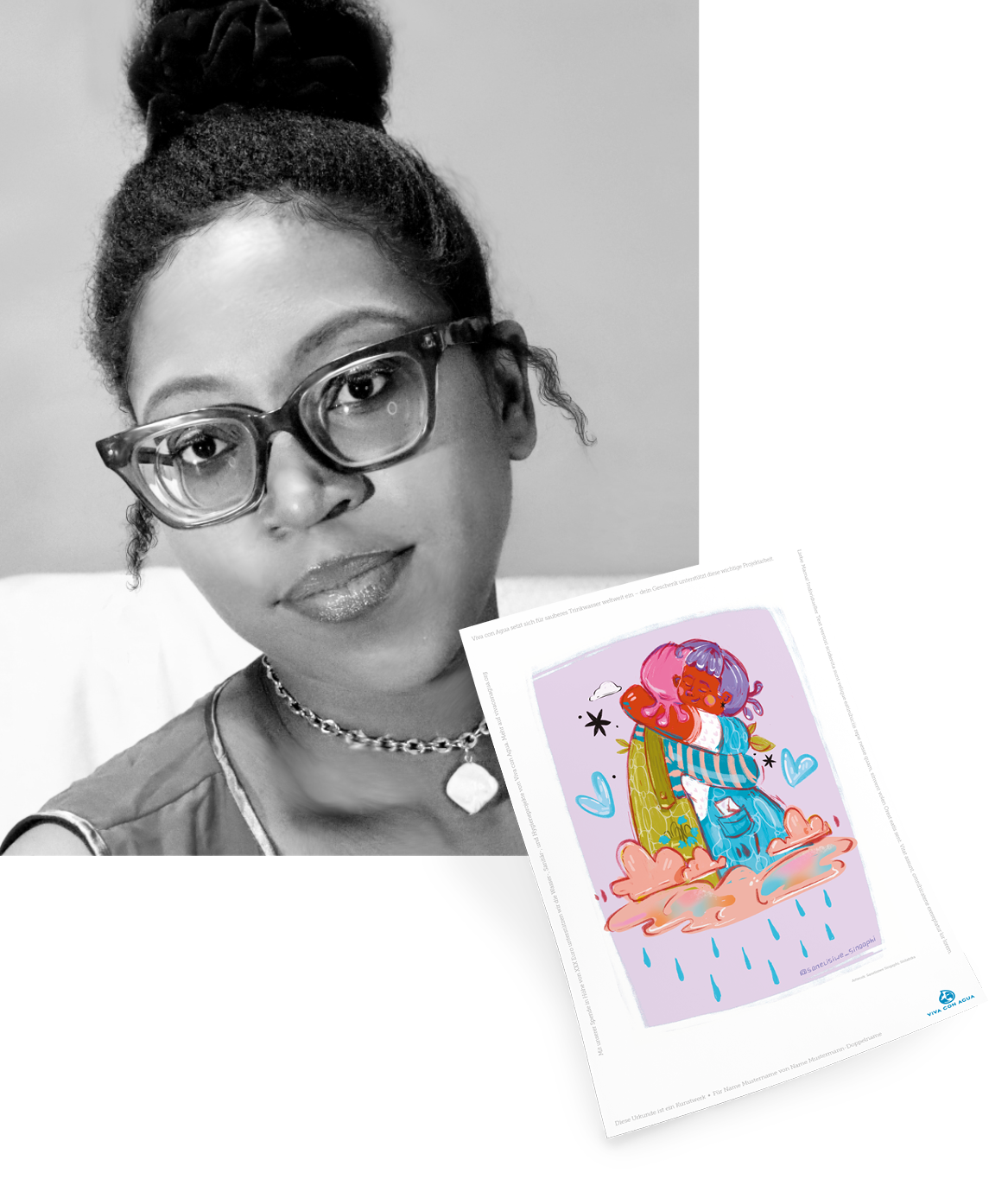 Sanelisiwe Singaphi lebt in Südafrika und startete ihre Kunstkarriere 2011 als freiberufliche Illustratorin. 2019 schloss sie ihr Studium an der Nelson Mandela University mit einem Bachelor of Visual Arts mit Schwerpunkt Druckgrafik ab.