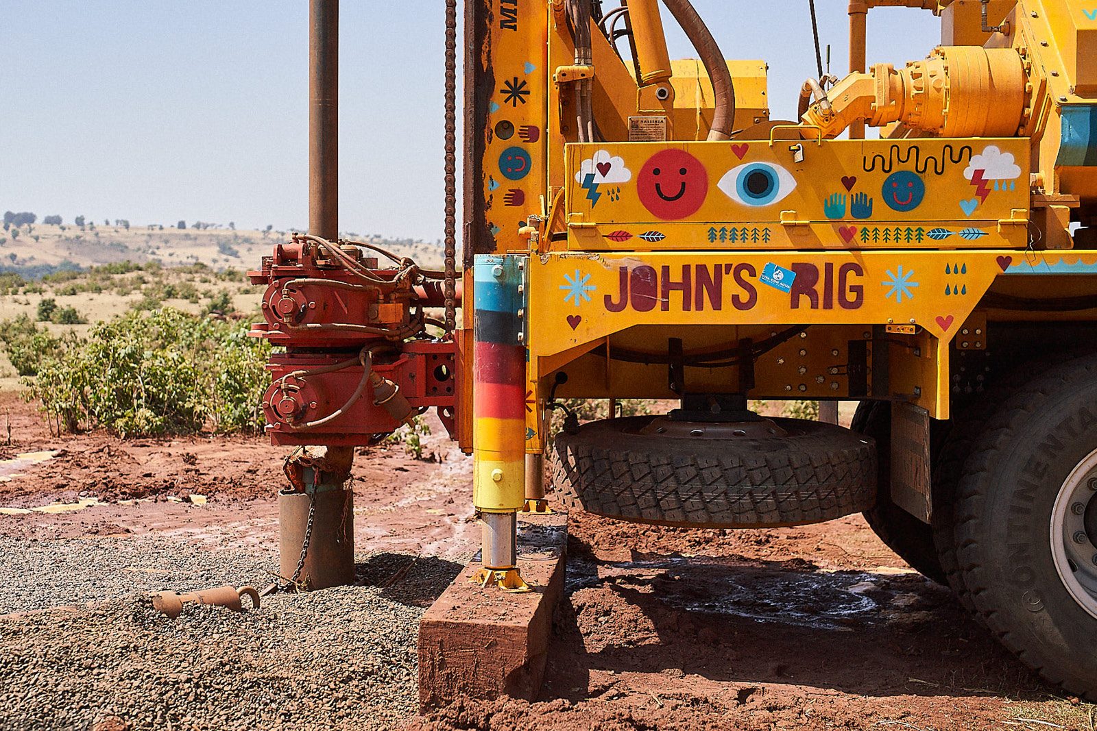 2017 nimmt das Wasserprojekt immer weiter Gestalt an: denn es stand die wichtige Entscheidung an, ein Brunnenbohrgerät zu kaufen. Fündig wurde Viva con Agua in Italien, wo das Brunnenbohrgerät erworben wurde. Also: Let’s start Drilling, oder? Ganz so schnell, gehts dann doch nicht. Denn bevor das Rig Richtung Horn von Afrika verschifft wurde, ging es einmal in das Atelier des Street Art Künstlers David Shillinglaw. Dort gab es einen neuen Anstrich. Sollte es nicht mit seiner Größe schon genug Aufmerksamkeit auf sich gezogen haben, dann spätestens mit den knalligen Farben des britischen Künstlers. Damit ist eins schon mal sicher: ein schöneres Brunnenbohrgerät findet sich so schnell nirgends. Das Gerät ziert seitdem auch viele Kommunikations-Materialien von Viva con Agua und ist zu einer Art Gallionsfigur des Vereins geworden. Getauft wurde es auf den Namen John’s Rig, um damit dem Stifter derJ2XU Stiftung auch in der alltäglichen Arbeit zu gedenken.