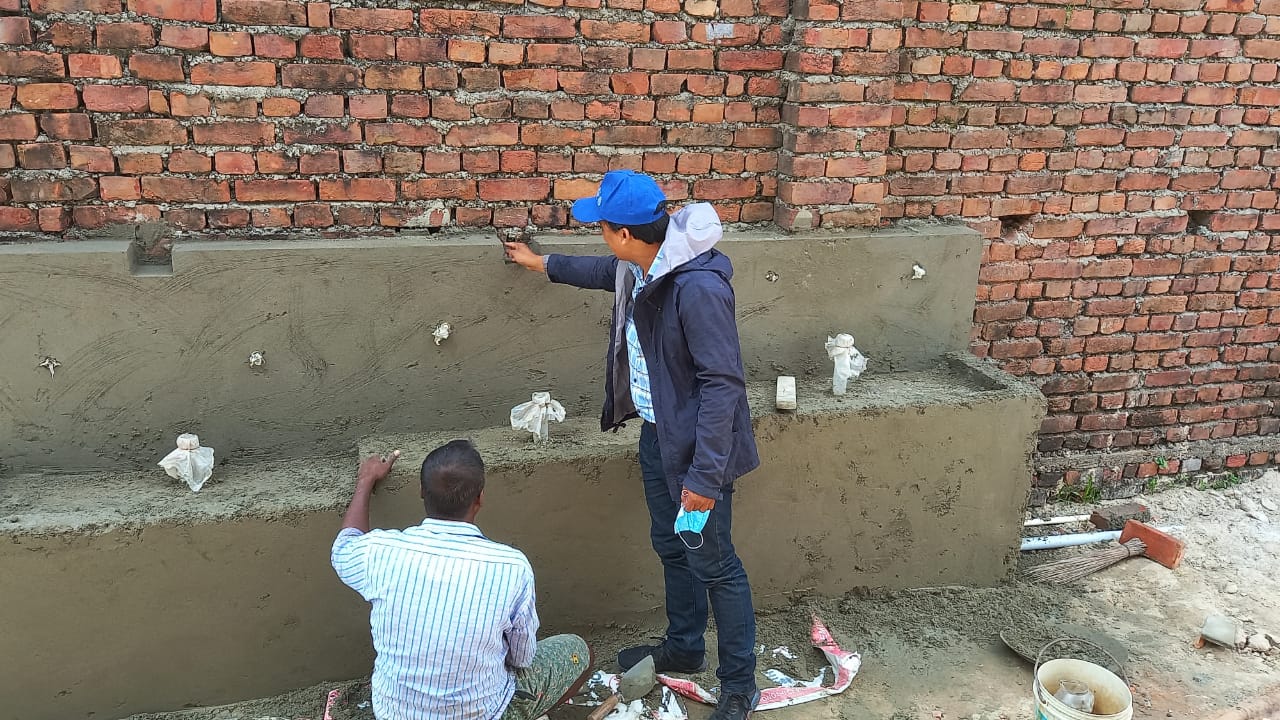 Chandramani beim Bau einer Handwaschanlage. Foto: Welthungerhilfe