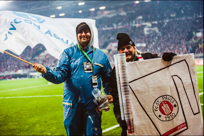 Und so wurden auch in der Aufstiegssaison wieder fleißig Becher gesammelt. Dabei sticht das Spiel, dass den Aufstieg bedeutet hat, natürlich besonders heraus. Denn am 12.05. wurden im Heimspiel gegen Osnabrück über 9.000 Becher gesammelt. Das ist bereits erstklassig! Die Spendensumme wird immer zwischen Viva con Agua und den Kiezhelden gesplittet. Pro Becher gibt es 1,50 Euro an Pfand zurück. So sind alleine in dem Spiel über 6.000 Euro für sauberes Trinkwasser zusammen gekommen. Damit finanzieren die Fans des FC St. Pauli mit den Spenden aus zwei Heimspielen beispielsweise bereits einen Brunnen in Uganda. Im letzten Jahr landeten insgesamt 132.274 Becher in den Tonnen von Viva con Agua. Wow!